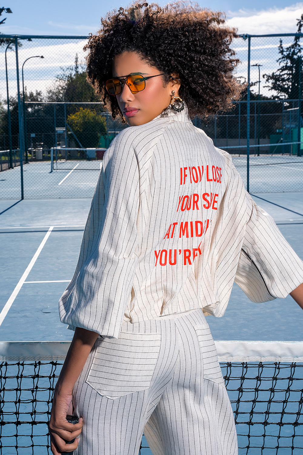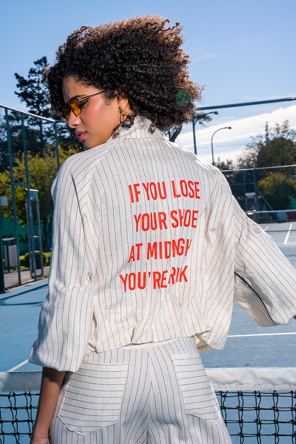 Ριγέ jacket με τύπωμα στην πλάτη
